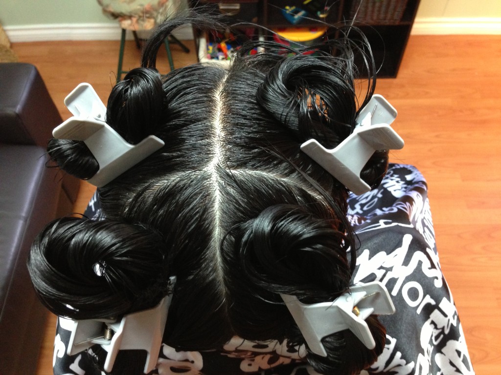 4. Start with one quadrant. Release a small horizontal section at the bottom of the hairline. Clip the rest back.